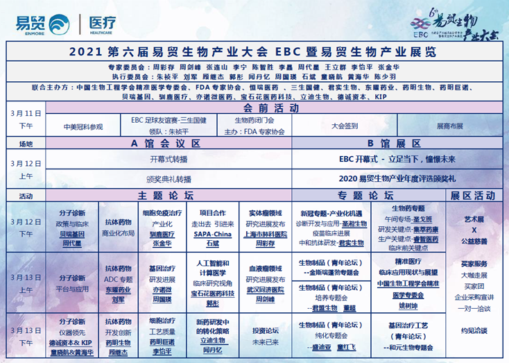 2021第六屆易貿(mào)生物產(chǎn)業(yè)大會(huì)EBC將于311-13日在蘇州國(guó)際博覽中心隆重召開。EBC 2020年參會(huì)人數(shù)2724人,2021年將突破4000人規(guī)模,參會(huì)人群覆蓋創(chuàng)業(yè)者、科學(xué)家、臨床醫(yī)生、投資人和供應(yīng)商等。同期開展的易貿(mào)生物產(chǎn)業(yè)展覽,將有超過200家儀器、耗材、服務(wù)等供應(yīng)商展出,會(huì)+展聯(lián)動(dòng)的EBC,已成為國(guó)內(nèi)外生物產(chǎn)業(yè)高層交流與合作的標(biāo)桿平臺(tái)。
