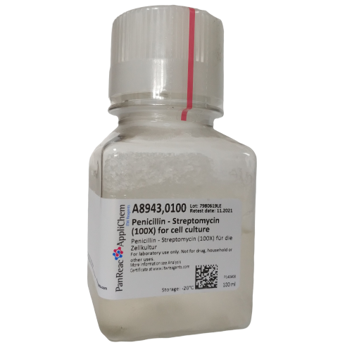 Penicillin-Streptomycin (100X) forcellculture,俗稱(chēng)青鏈霉素雙抗,常用于預(yù)防細(xì)胞培養(yǎng)的細(xì)菌污染,特別是革蘭氏陽(yáng)性和陰性菌的污染,可以直接添加到細(xì)胞培養(yǎng)液內(nèi)。青霉素抑制肽聚糖合成,鏈霉素抑制蛋白質(zhì)的合成,有效防止細(xì)菌細(xì)胞壁形成。 |
