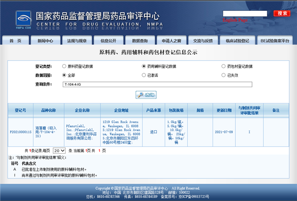 Pfanstiehl致力于為全球生物制劑公司提供高質(zhì)量注射級(jí)藥用輔料,主要產(chǎn)品注射級(jí)海藻糖(T-104-4)、蔗糖(S-124-2-MC和S-124-1-MC)、甘露醇(M-109-7)、無水琥珀酸鈉(D-160)、六水琥珀酸鈉(D-161)、組氨酸(H-116)、組氨酸鹽酸鹽(H-117)、精氨酸(A-170)等產(chǎn)品已經(jīng)獲得CDE藥用輔料注冊(cè)號(hào),其中海藻糖和蔗糖已經(jīng)處于激活狀態(tài)。