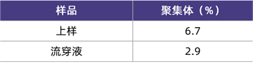在該應(yīng)用案例中,研究人員使用CHO細(xì)胞表達(dá)IgG型單克隆抗體,料液經(jīng)過(guò)Protein A親和層析和陽(yáng)離子交換層析純化后,在較低的pH和較高的電導(dǎo)率條件下孵育,誘導(dǎo)產(chǎn)生高含量的聚集體,再以流穿模式上樣HCPureTM,收集流穿液和淋洗液,檢測(cè)聚集體含量。