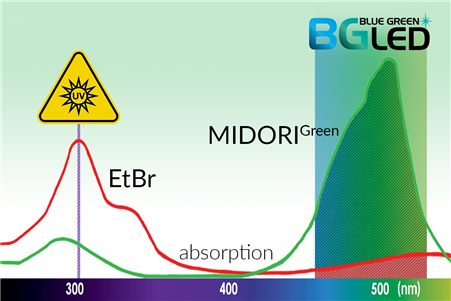 圖1:EtBr和MIDORIGreen吸收光譜對比