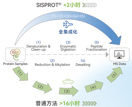 The sample preprocessing stage in proteomics experiments is a critical step to ensure the accuracy and consistency of experimental results. Given the complexity and numerous steps involved in the sample preprocessing workflow, developing an integrated and standardized experimental procedure is crucial for addressing the challenges in proteomics sample preprocessing. The SISPROT^?^ technology launched by BePepBio in 2023 is an integrated proteomics preprocessing technology based on the centrifugal pipette tip "Spintip". It enables one-stop completion of all steps in proteomics sample preprocessing from the crude sample, including protein sample pre-enrichment, reduction, alkylation, enzymatic digestion, and desalting. The processed samples can be directly used for LC-MS/MS analysis. This technology combines high sensitivity, high throughput, and high stability, making it particularly suitable for protein samples in the low microgram or even nanogram range.