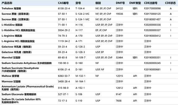 Pfanstiehl高純度低內(nèi)毒素注射用糖類及氨基酸等十余種輔料產(chǎn)品。Pfanstiehl成立已有百余年歷史,專注于注射用輔料研發(fā)和生產(chǎn),產(chǎn)品包括海藻糖、蔗糖、甘露醇、精氨酸、精氨酸鹽酸鹽、組氨酸、組氨酸鹽酸鹽等。Pfanstiehl所有產(chǎn)品支持CDE登記注冊,并且海藻糖和蔗糖已經(jīng)處于激活狀態(tài);
